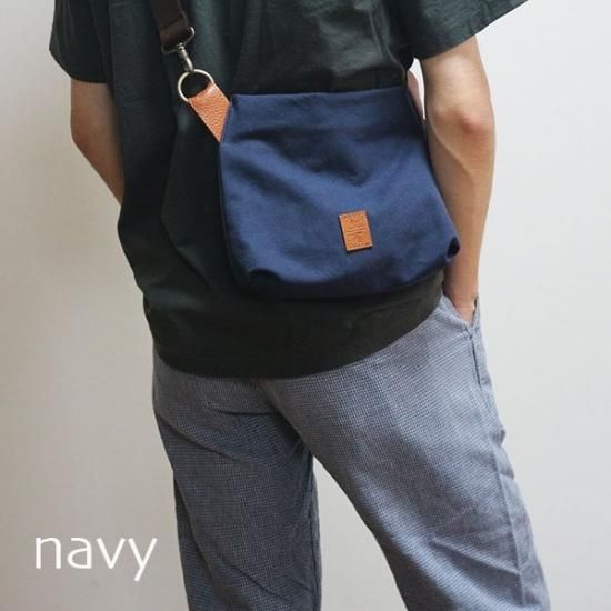 表地は8号洗い帆布、牛革の色はキャメル、ショルダーはチョコ色(帆布がブラックのみショルダーは黒色に)、裏地はオリジナルのtobiuoブルーを使用しています。